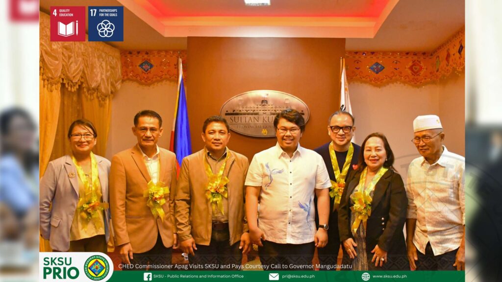 Sultan Kudarat State University (SKSU) warmly welcomed Commissioner Desiderio R. Apag III, D. Eng., PCPE of the Commission on Higher Education (CHED) during his official visit to the university. Commissioner Apag also serves as Chairperson of the SKSU Board of Regents.